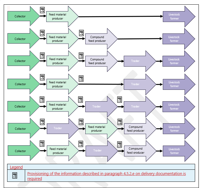 Such a system may include for example allocation adjustments (e.g. that the first flow of product through the system following a change from responsible feed material to regular feed material, can be classified as regular) or other systems. Flushing the processing or storage equipment between flows of responsible feed material and regular feed material can be used as such a system, but physical cleaning is not a requirement for this standard.