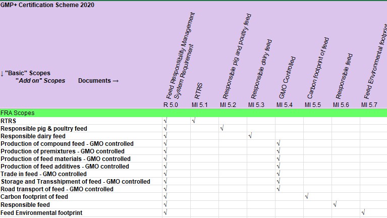 - Part of GMP+ certification assigned to a feed company after a successful audit. Feed companies, ensuring similar activities and products, get the same GMP+ certification scope.