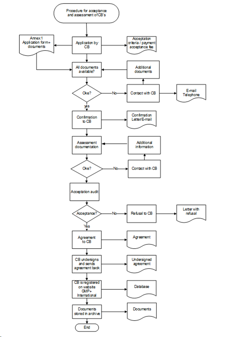 Desk assessment of the requested documents will take at least 4 and a maximum of 6 weeks. The applicant Certification Body will be informed by GMP+ International about the results. Only after a positive result of the desk assessment an acceptation audit will be performed .