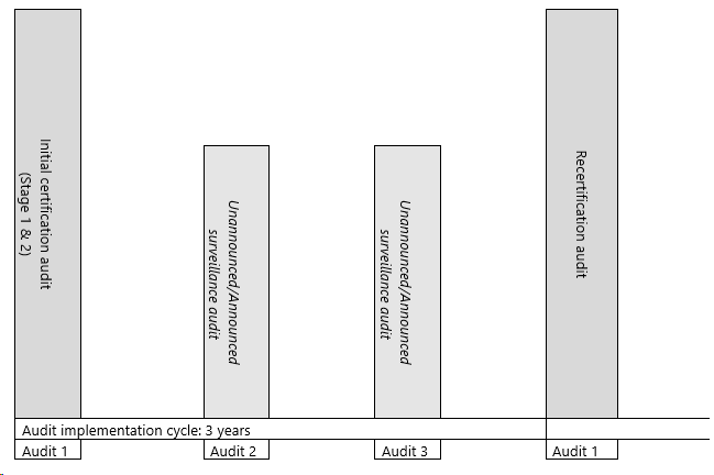 | Initial certification-, recertification- and (un)announced surveillance audit | |||